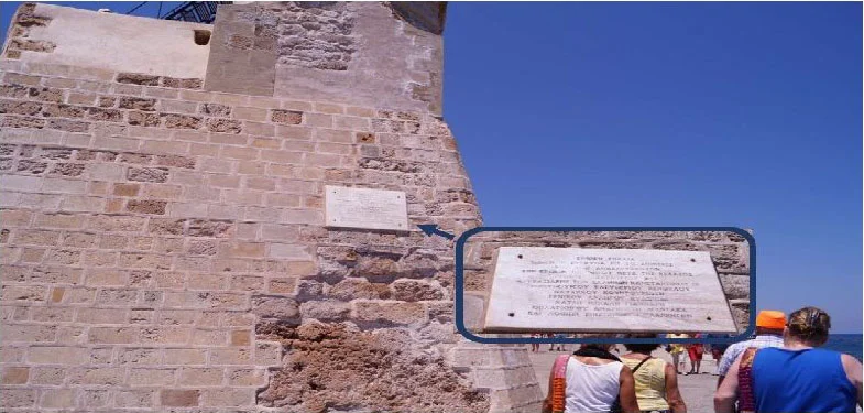 Στα μέσα του 16ου αιώνος, οι Βενετοί κατασκεύασαν στη βορειοδυτι- κή πλευρά του λιμένος των Χανίων το οχυρό Revellino del Porto (προμαχώ- νας του λιμένος), το οποίο είναι γνωστό με το όνομα «Φιρκάς» (τουρκική λέξη που σημαίνει στρατώνας). Στις ημέρες μας εντός του φρουρίου στεγάζεται το Ναυτικό Μουσείο Κρήτης. Στην εξωτερική πλευρά του τείχους στο γωνιακό πύργο υπάρχει μια μαρμάρινη πλάκα[1] στην οποία αναγράφονται τα εξής (με κεφαλαία γράμματα χωρίς σημεία στίξεως):